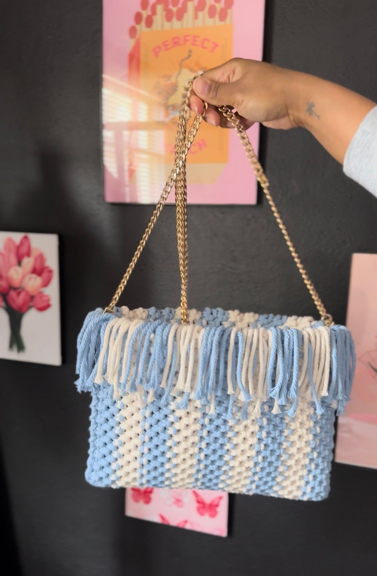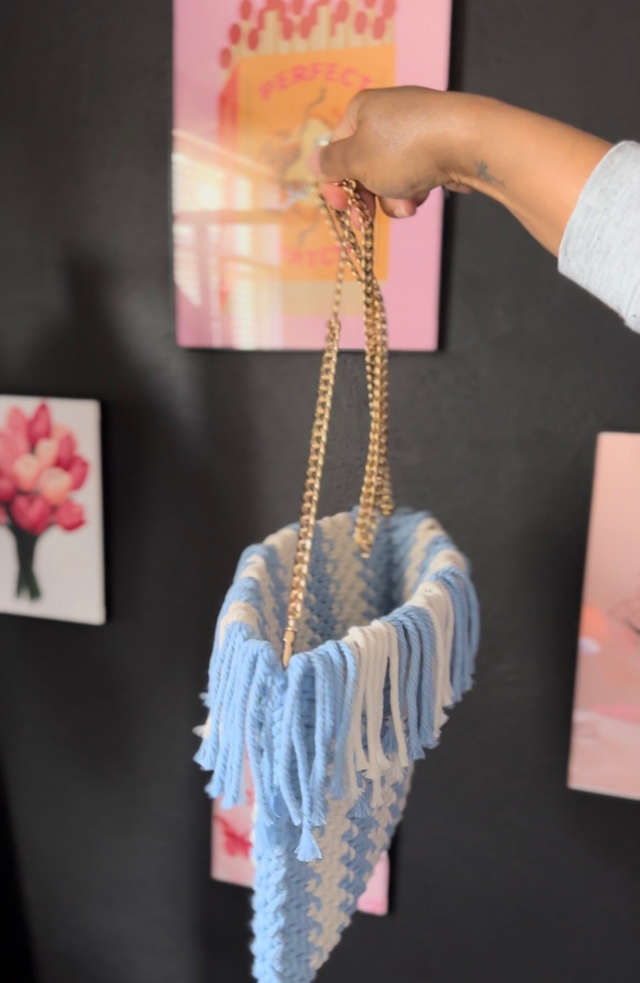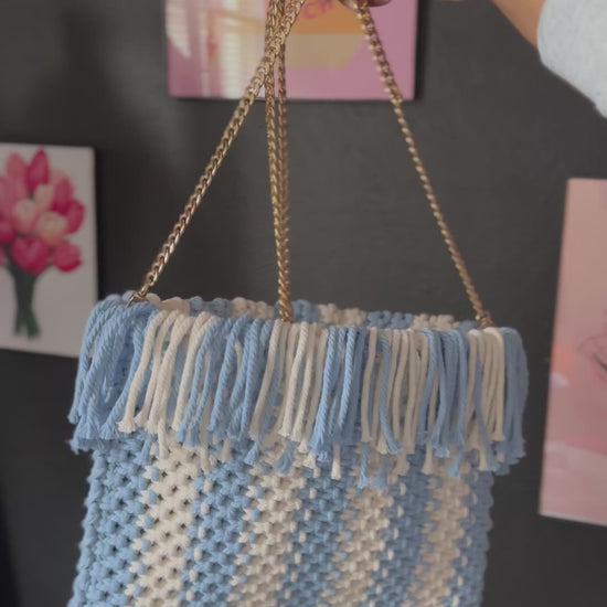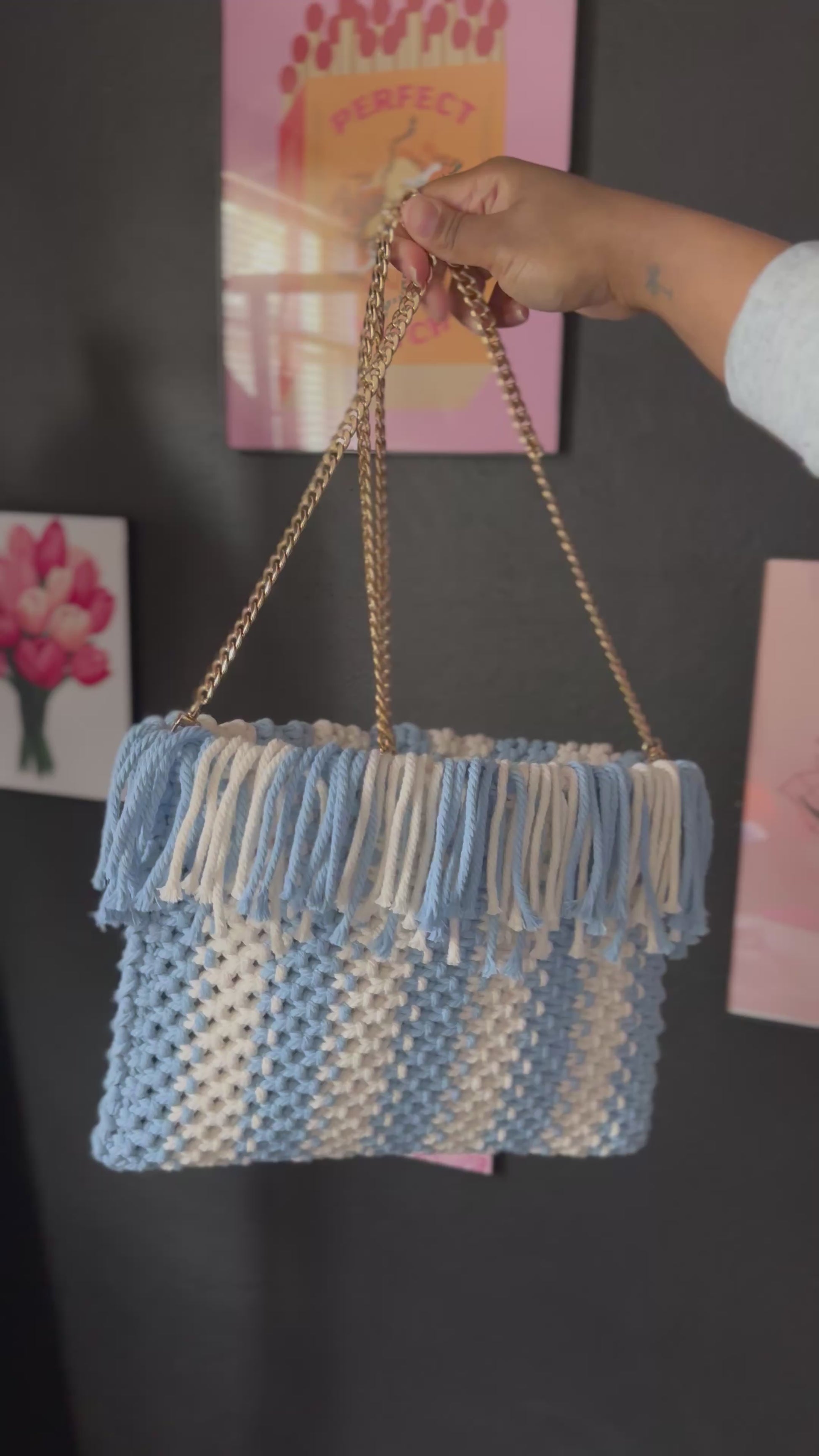 Light, dreamy, & made to stand out. This mushroom-top blend of sky blue and white gives a soft, airy vibe, finished with a chic gold chain.